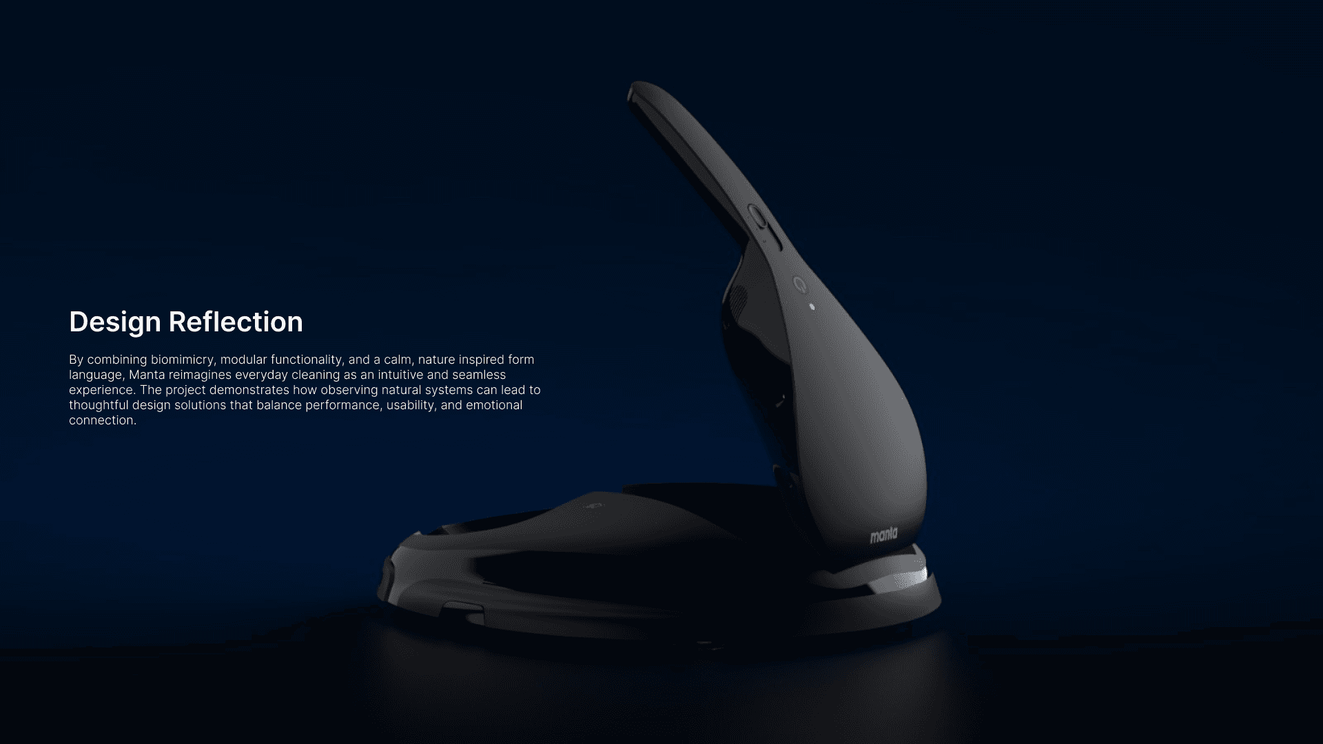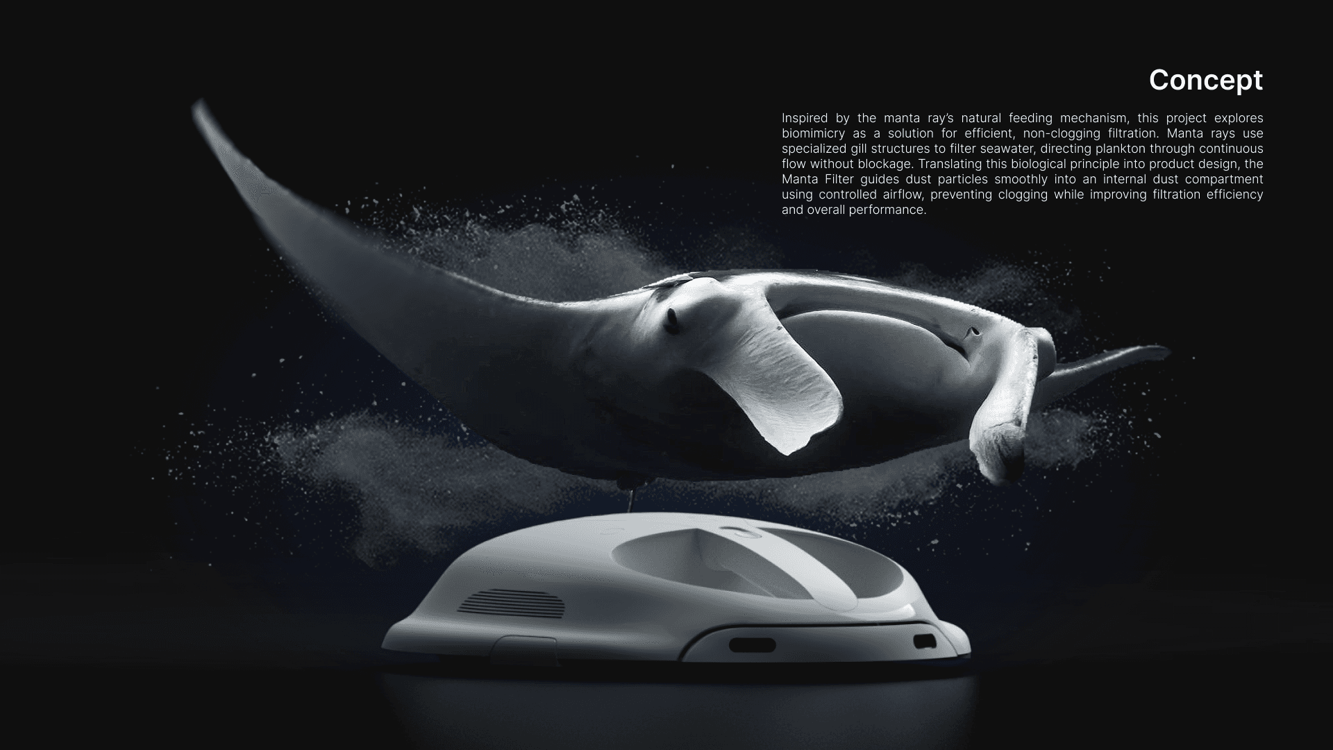 Manta Filter is a school group project that explores how nature inspired thinking can inform the design of future household products. The project focuses on translating biological principles into a cohesive product ecosystem, emphasizing form, interaction, and emotional connection alongside functionality. Through a concept-driven design process, the project aims to demonstrate how observation, interpretation, and abstraction can lead to meaningful and innovative design outcomes.