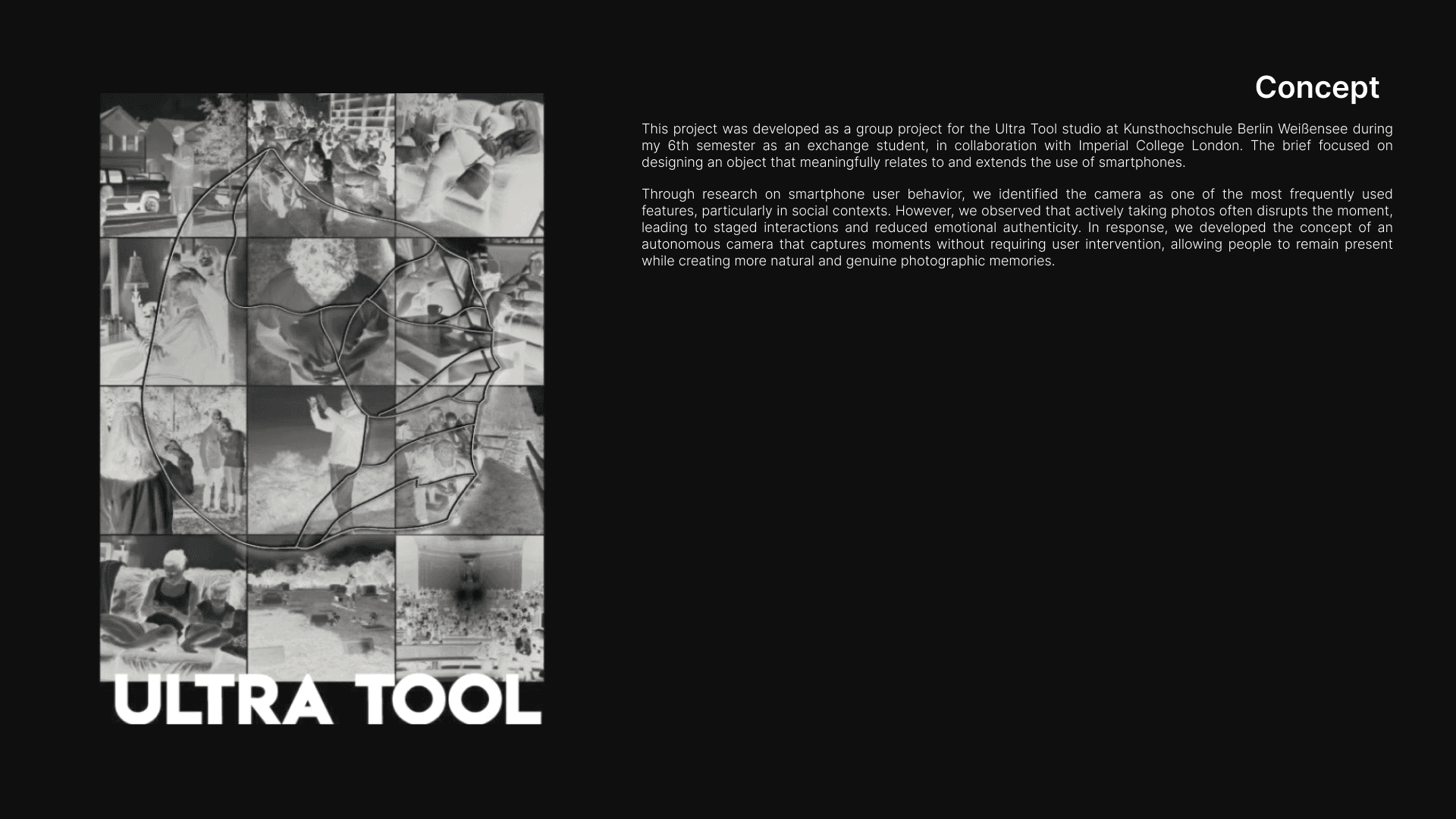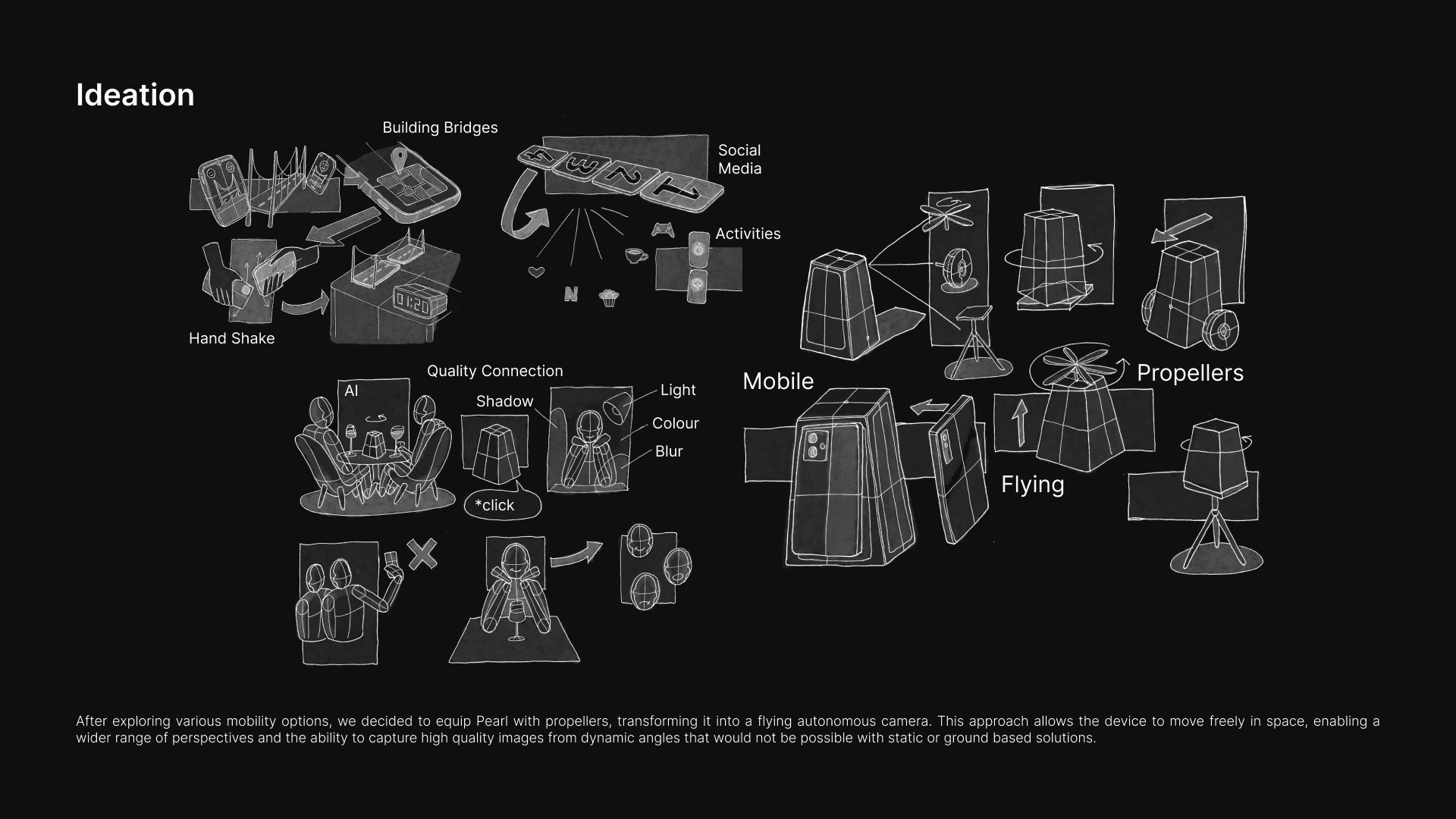 Pearl is an autonomous camera concept that rethinks how moments are captured in social settings. Designed as part of an academic collaboration, the project explores a future where photography happens in the background, allowing people to stay present while meaningful moments are recorded naturally.